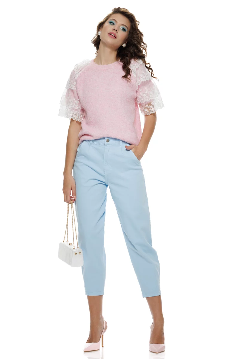 Acești blugi baby blue premium tip balloon sunt definiția feminității moderne reinterpretate în cheie fashion. Croiala lejeră, cu volum controlat și linie conică spre gleznă, creează o siluetă stilată, sofisticată și extrem de actuală. Nuanța delicată de roz adaugă un aer proaspăt, rafinat și elegant, perfect pentru femeia care iubește trendurile dar nu renunță la bunul gust.