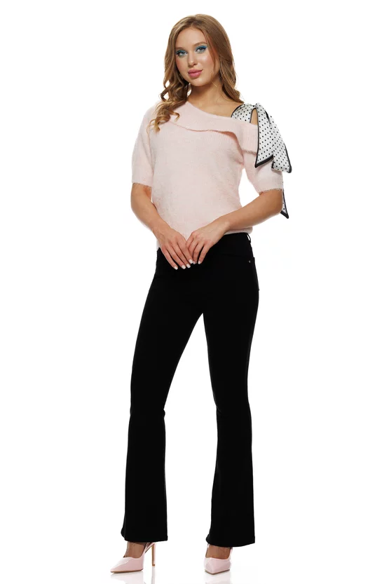 Descoperă eleganța atemporală a acestor blugi damă premium evazați, creați din denim elastic de calitate superioară pentru confort maxim și o potrivire impecabilă. Croiul evazat subțiază vizual coapsele și alungește picioarele, oferind un look sofisticat și feminin.