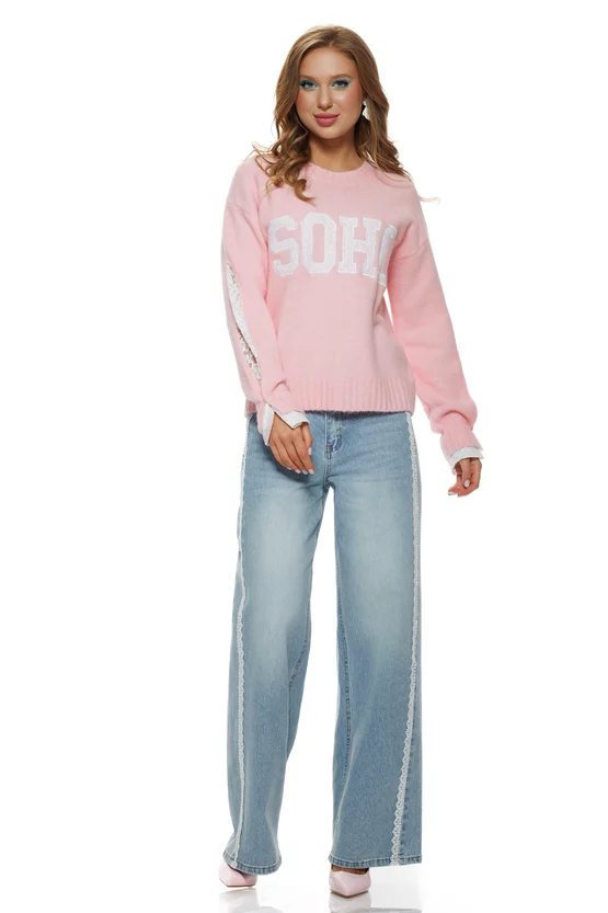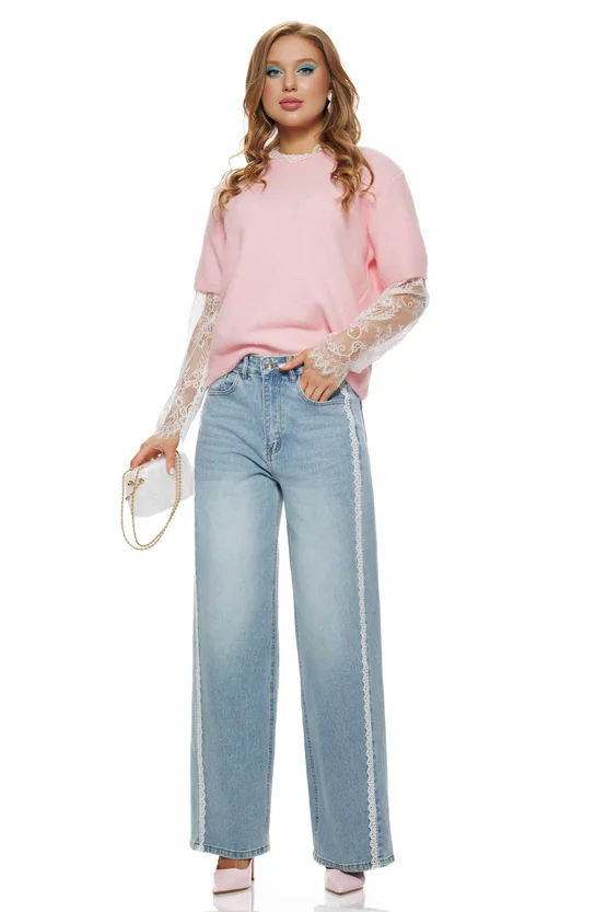 Adaugă un plus de rafinament ținutelor tale casual cu acești blugi damă premium wide, evidențiați prin inserțiile elegante din dantelă aplicate pe lateral.