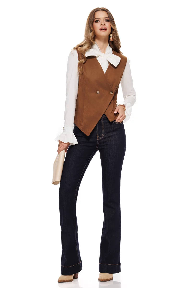 Simplitatea care rămâne mereu la modă – acești jeans evazați din denim albastru închis sunt piesa de bază pe care o vei iubi sezon după sezon. Croiala lor clasică și elegantă avantajează orice siluetă, iar cusăturile contrastante adaugă un detaliu discret, dar sofisticat. Sunt versatili, moderni și extrem de ușor de integrat atât în ținutele casual de zi, cât și în cele mai feminine outfituri de seară.