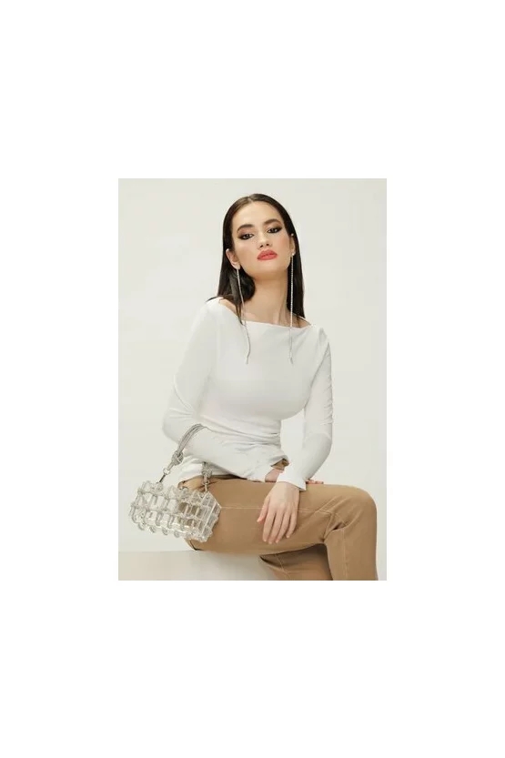 Bluza dama crem din bumbac elastic premium cu decolteu barcuta