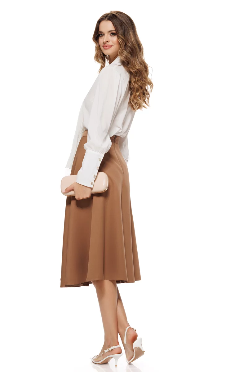 Bluza dama ecru Fofy eleganta cu esarfa plisata si brosa