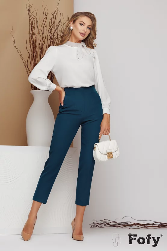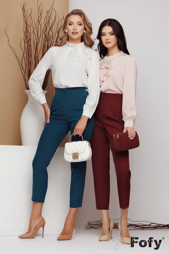 Bluză de dama eleganta, croita din voal alb imaculat, premium. Un produs modern cu aer feminin elegant pe care trebuie sa il ai in garderoba de sezon. Modelul iese in evidenta prin design-ul clasic si funda din organza innobilata cu perle si cristale glam. Ideala pentru femeia activa, moderna. O poti purta cu stil alaturi de pantaloni conici, fuste creion din piele ecologica sau variante midi tricotate. Mixeaza si cu blazere uni cu croiala chic sau cu paltoane groase, texturate. Accesorizeaza cu genti in trend, berete cu linie pariziana si esarfe maxi din casmir in nuante pastelate. Pentru un plus de eleganta poti adauga cizme inalte si manusi din piele ecologica.