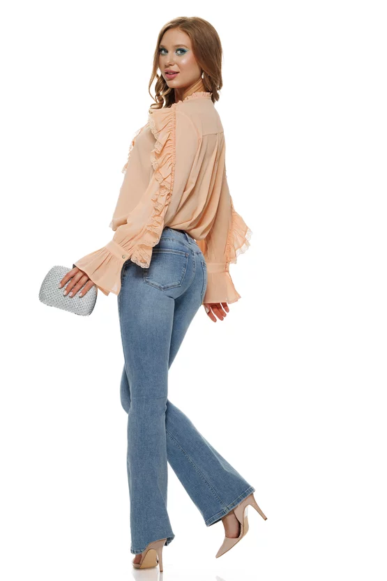 Bluza dama eleganta din voal piersica cu volane sofisticate conturate cu dantela