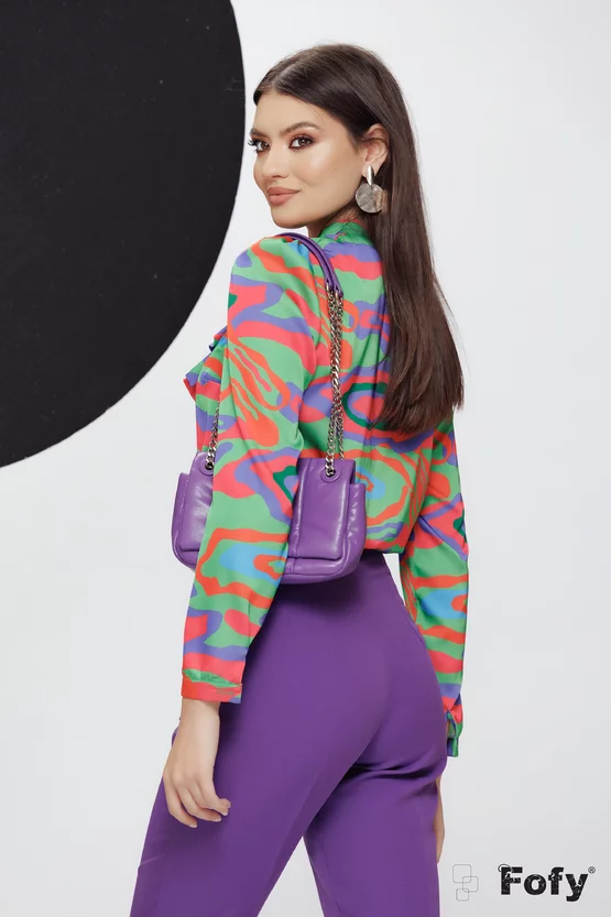 Bluza dama eleganta multicolora Fofy din voal satinat cu jabou elegant