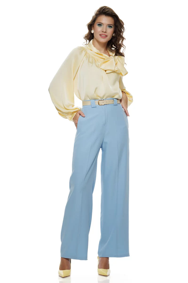 Această bluză elegantă damă din material satinat premium adaugă un plus de rafinament oricărei ținute. Textura fină și lucioasă cade fluid pe corp, evidențiind delicat silueta, iar nuanța galbena pudrat conferă un aer romantic și sofisticat.
