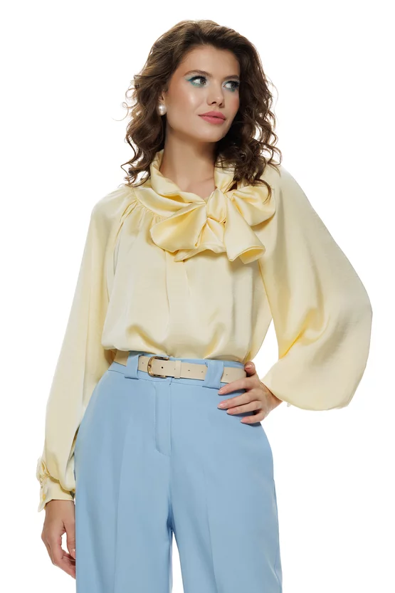 Bluza dama eleganta satinata galbena cu guler retro si funda