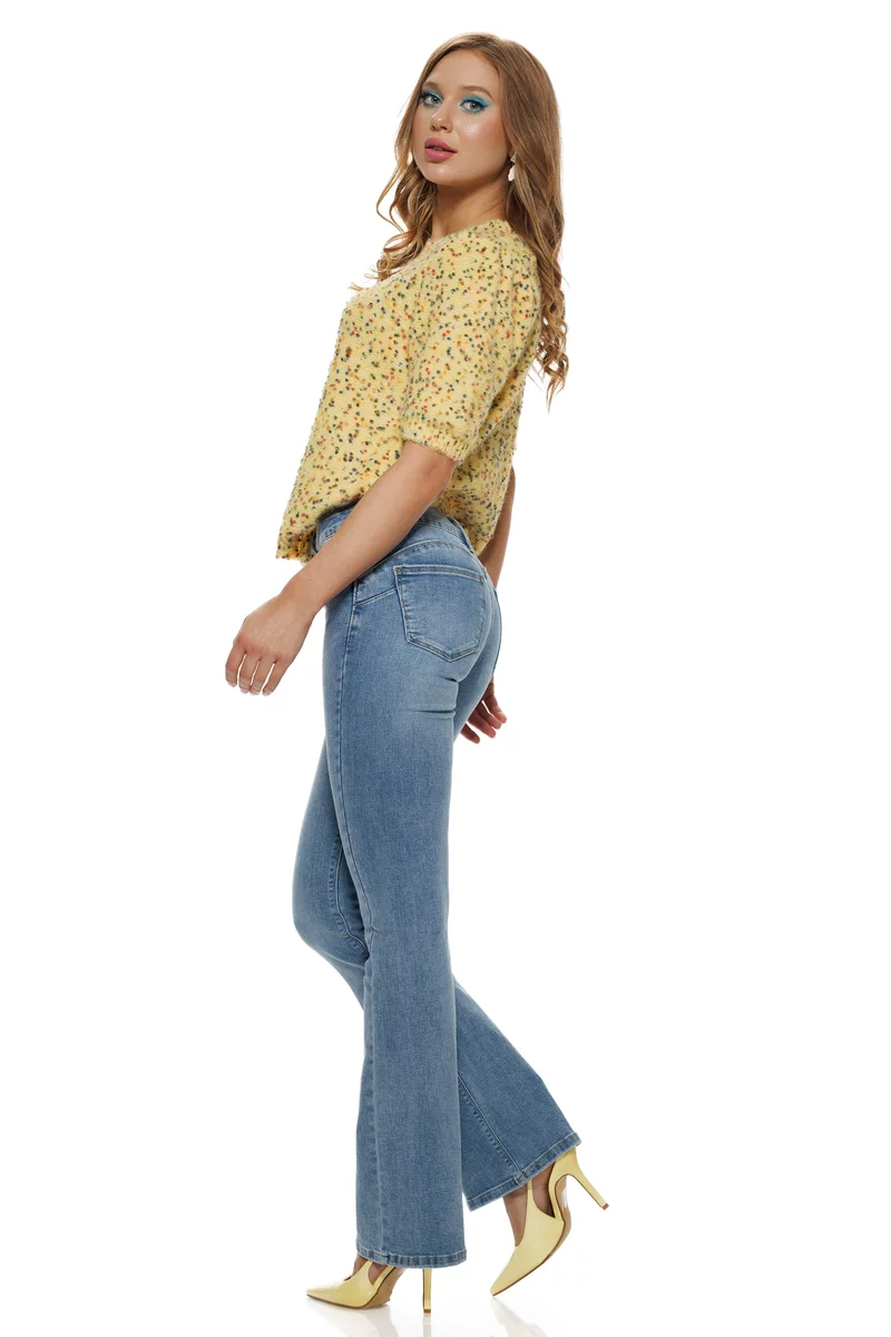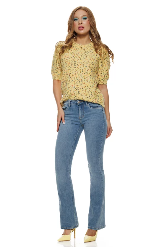 O bluza care îți aduce instant bună dispoziție. Nuanța delicată de galben pai îmbracă frumos orice ținută, iar efectul confetti – acele puncte multicolore presărate în tricot – oferă un aer jucăuș, fresh și modern. Textura pufoasă și croiul lejer îl fac extrem de confortabil, în timp ce mânecile bufante adaugă feminitate și un plus de stil.