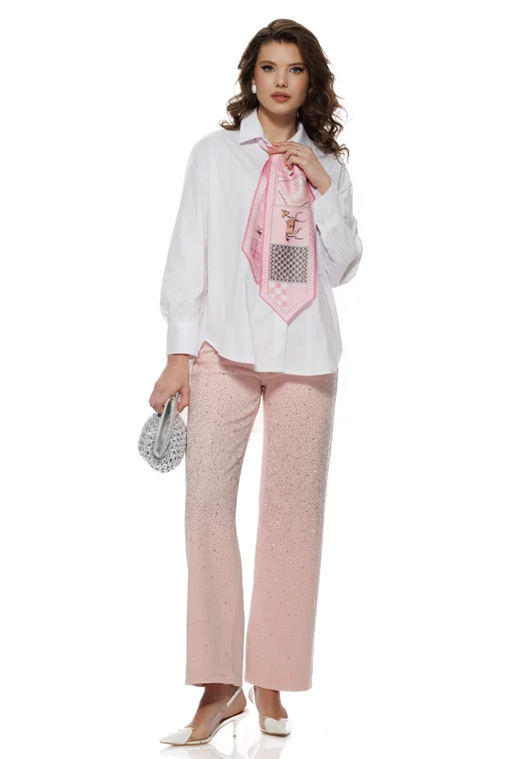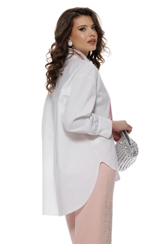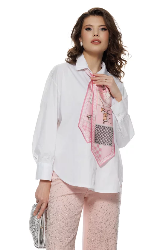 Camasa dama eleganta alba din bumbac 100% cu esarfa satinata roz