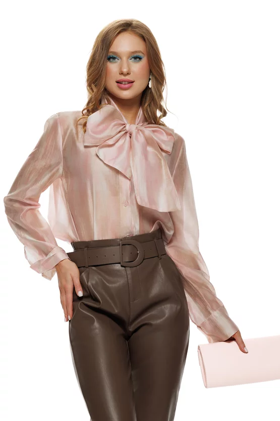 Camasa dama eleganta cristal rose din organza de tencel in degrade si funda maxi innodata