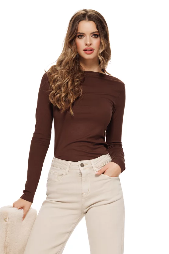 Bluza dama maro din bumbac elastic premium cu decolteu barcuta