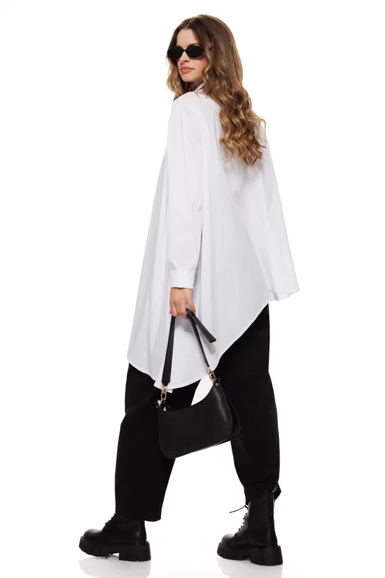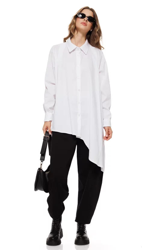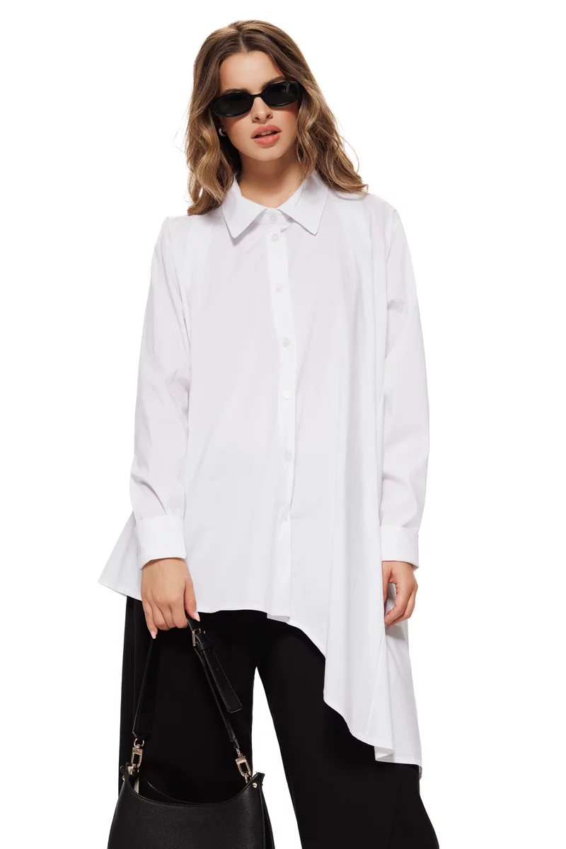 Camasa dama alba premium din bumbac cu croi modern asimetric
