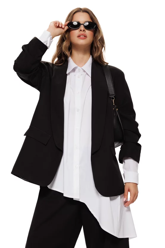 Această cămașă alba oversized este piesa de bază din garderoba unei femei moderne. Cu un design simplu, dar rafinat, poate fi purtată atât ca piesă principală într-o ținută casual chic, cât și ca strat ușor peste un top sau rochie.