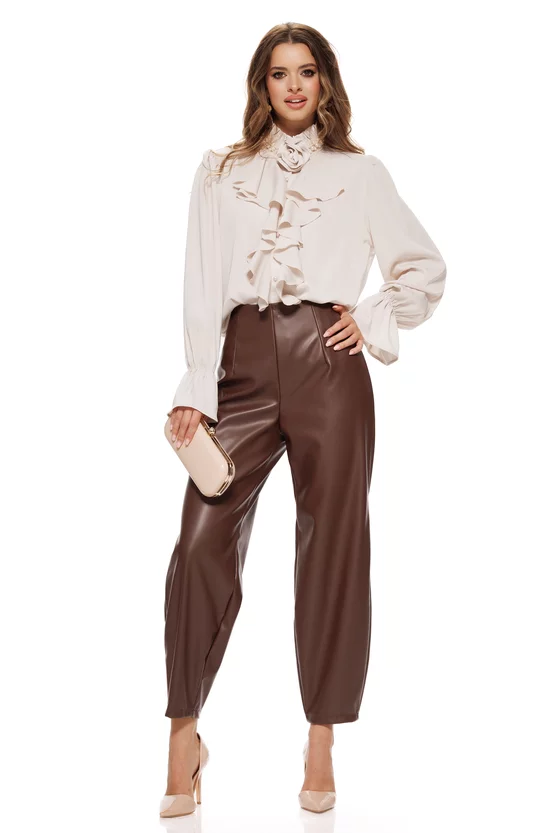 Această camasa ivory cu volane și guler decorat cu perle este piesa care îmbină feminitatea romantică cu stilul sofisticat. Detaliile spectaculoase transformă orice ținută într-una memorabilă, fie că alegi să o porți la birou sau la evenimente elegante.