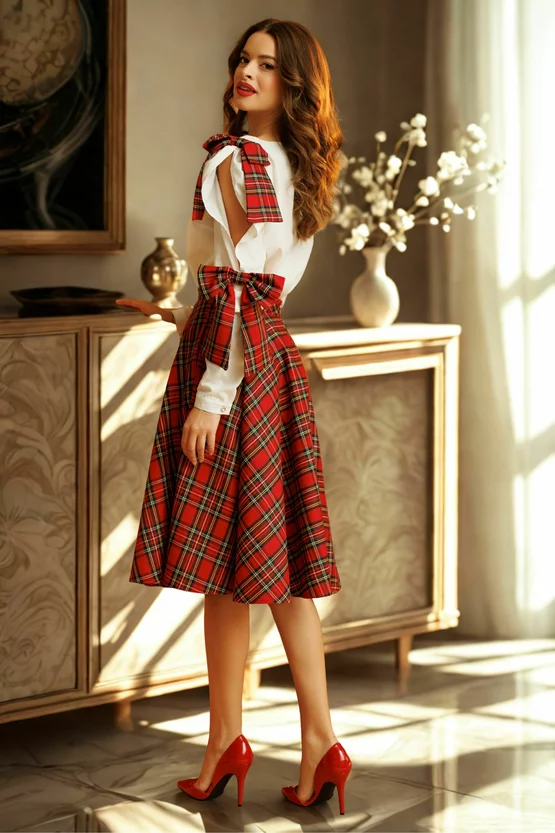 Adaugă un strop de prospețime și energie garderobei tale cu această camasa alba , perfectă pentru zilele în care vrei să ieși în evidență prin stil și feminitate.Fundele in carouri aplicate la mâneci aduc o notă jucăușă și sofisticată în același timp. O alegere ideală pentru un look elegant, dar relaxat, care îți luminează ziua.