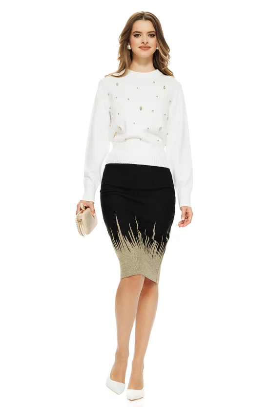 Fustă Fofy conică neagră cu detalii aurii din fir metalizat