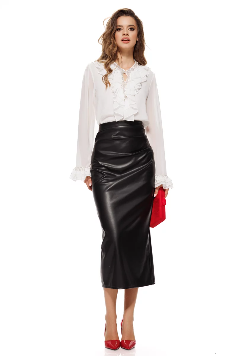 Alege această fustă midi din piele eco și creează-ți un look elegant, modern și plin de atitudine!