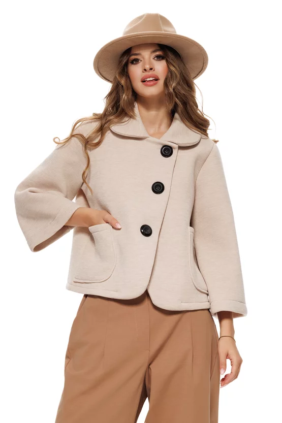 Jacheta dama bej croi retro cu guler buzunare si nasturi maxi