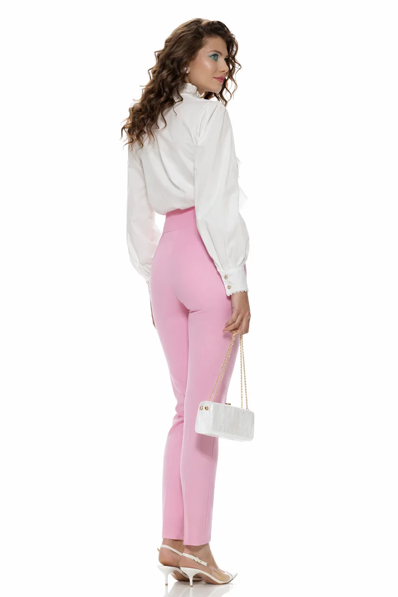 Un statement de stil in cea mai vibranta nuanta a sezonului. Pantalonii roz aduc un plus de prospetime si energie garderobei tale, pastrand in acelasi timp eleganta si rafinamentul unei piese atent croite.