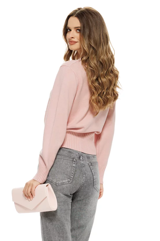 Alege acest pulover roz cu perle și pietre decorative și transformă orice ținută simplă într-una sofisticată și modernă!