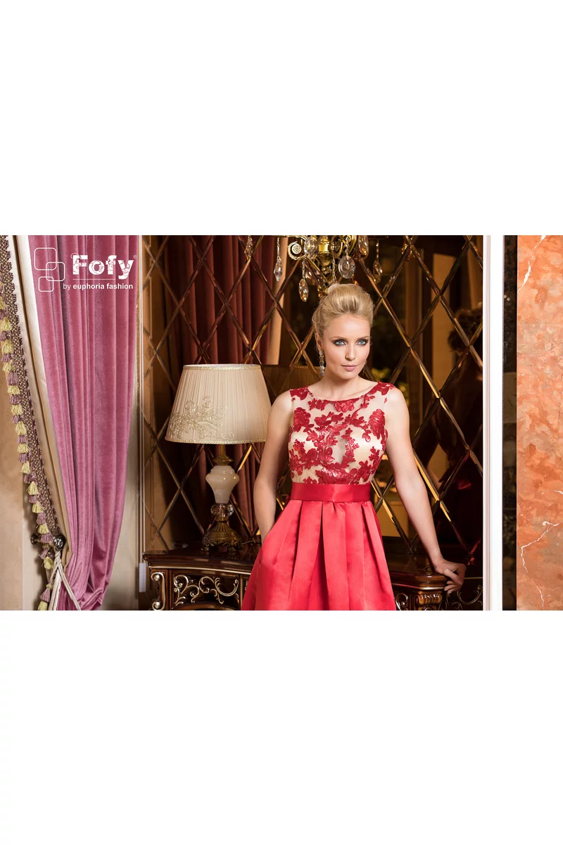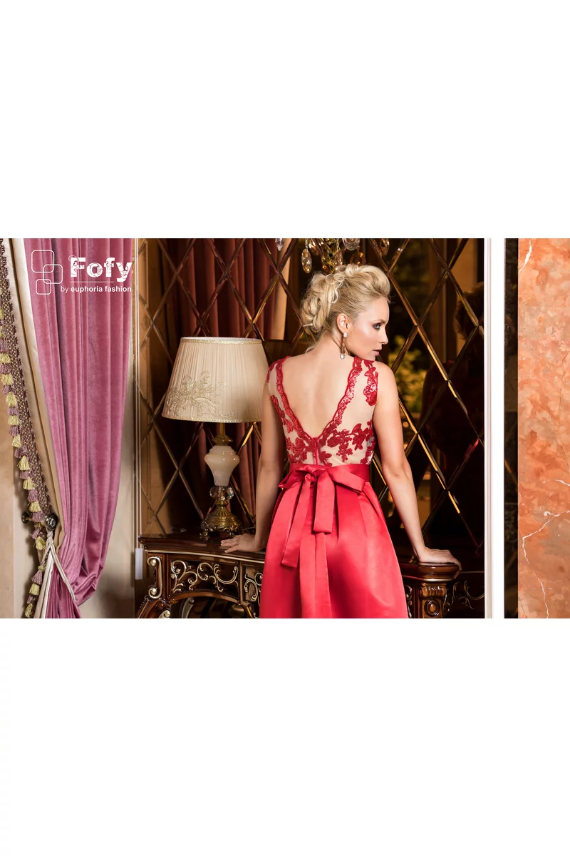 Culoare: roșu intens + bust nude/ivory cu aplicații din dantelă roșie