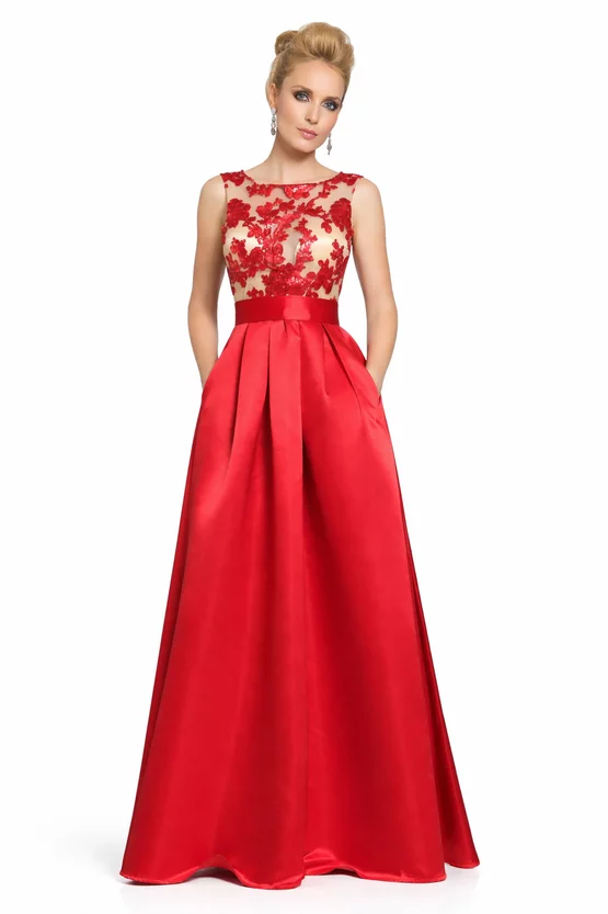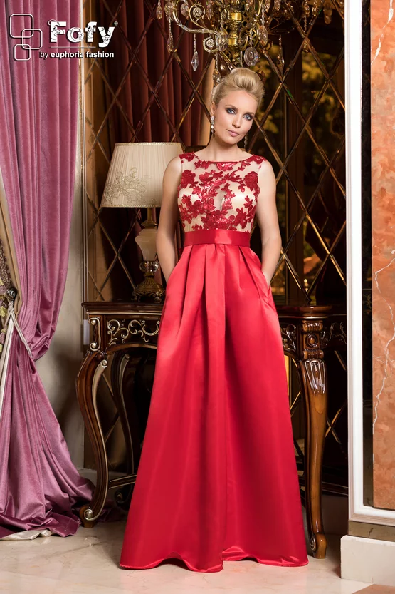 O rochie care întoarce priviri prin eleganță clasică și detalii couture. Partea de sus, cu efect „second skin” din tull nude, este decorată cu paiete roșii, pentru un contrast spectaculos și un plus de rafinament. Fusta lunga din satin roșu are volum frumos datorită pliurilor, iar talia este accentuată cu un cordon ce se leagă în fundă, pentru o siluetă feminină și armonioasă. Perfectă pentru seri speciale, petreceri și evenimente în care vrei să strălucești cu bun gust.