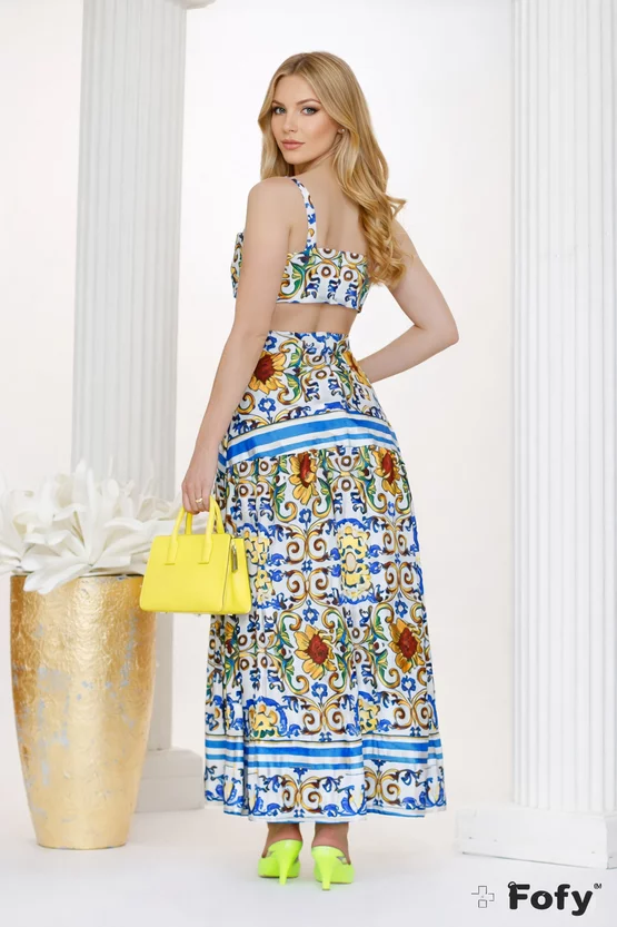 Compleu de vara fusta lunga cu bustiera imprimeu Amalfi