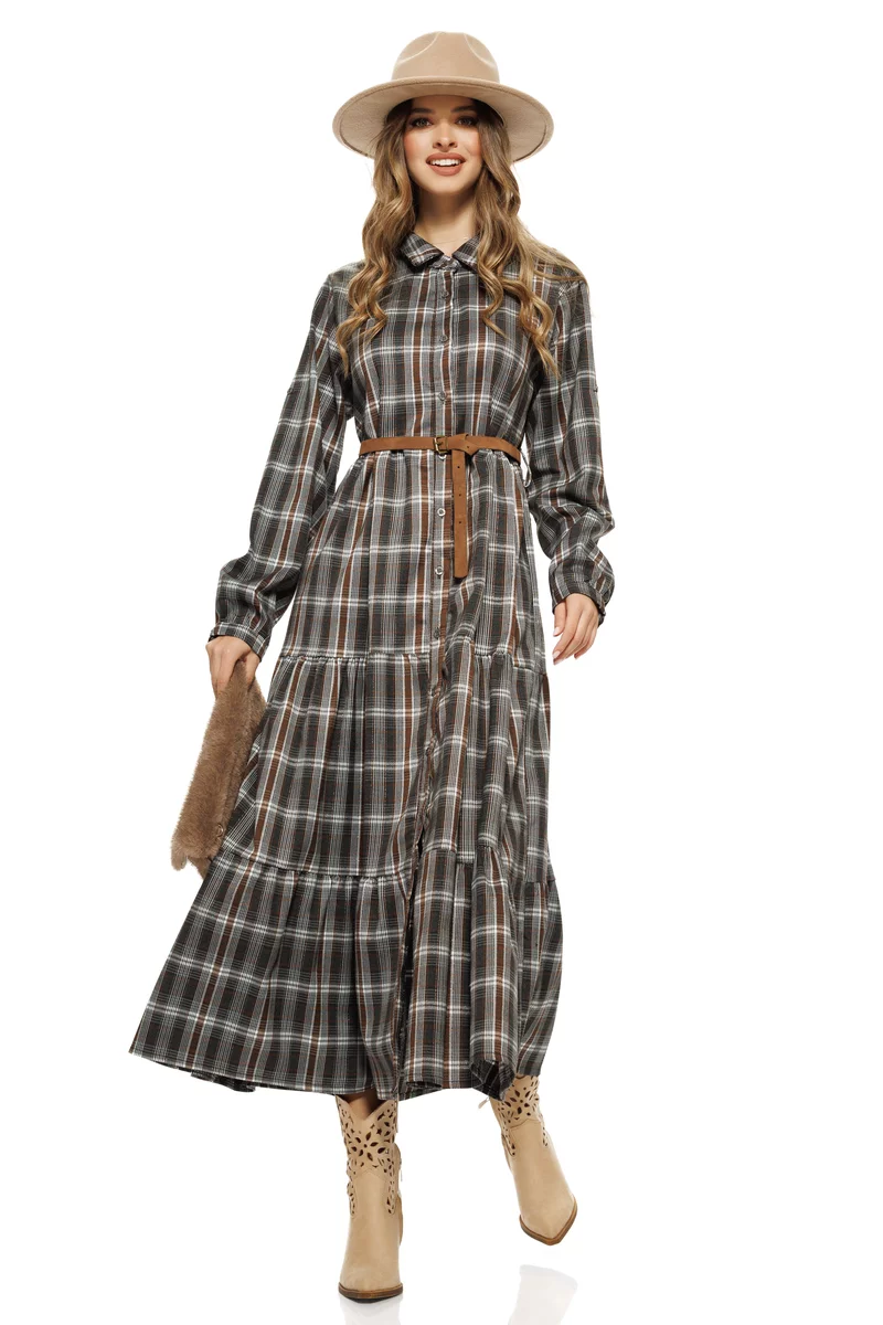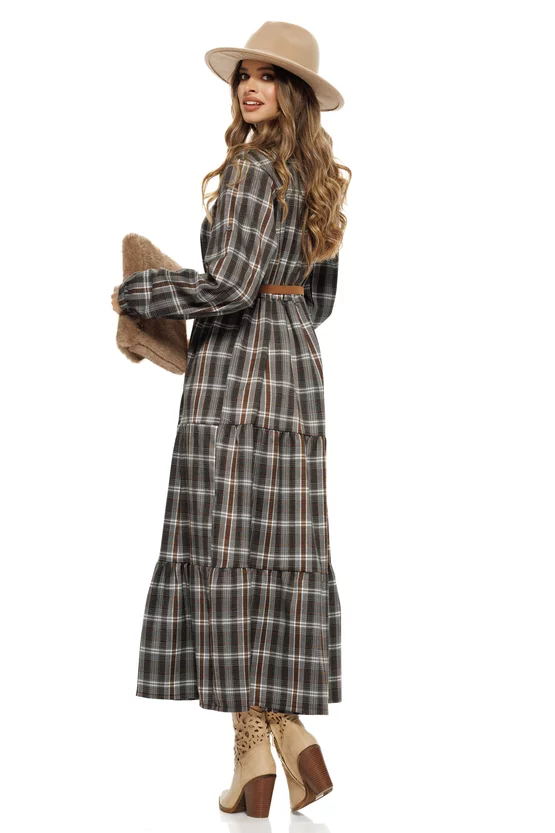 Alege această rochie cămașă midi în carouri cu curea elegantă, pentru un look autentic de toamnă – feminin, relaxat și plin de farmec natural.