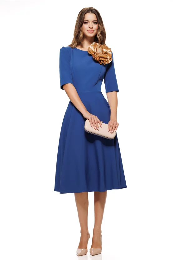 Rochie eleganta Fofy albastra cu floare detasabila mocca mouse