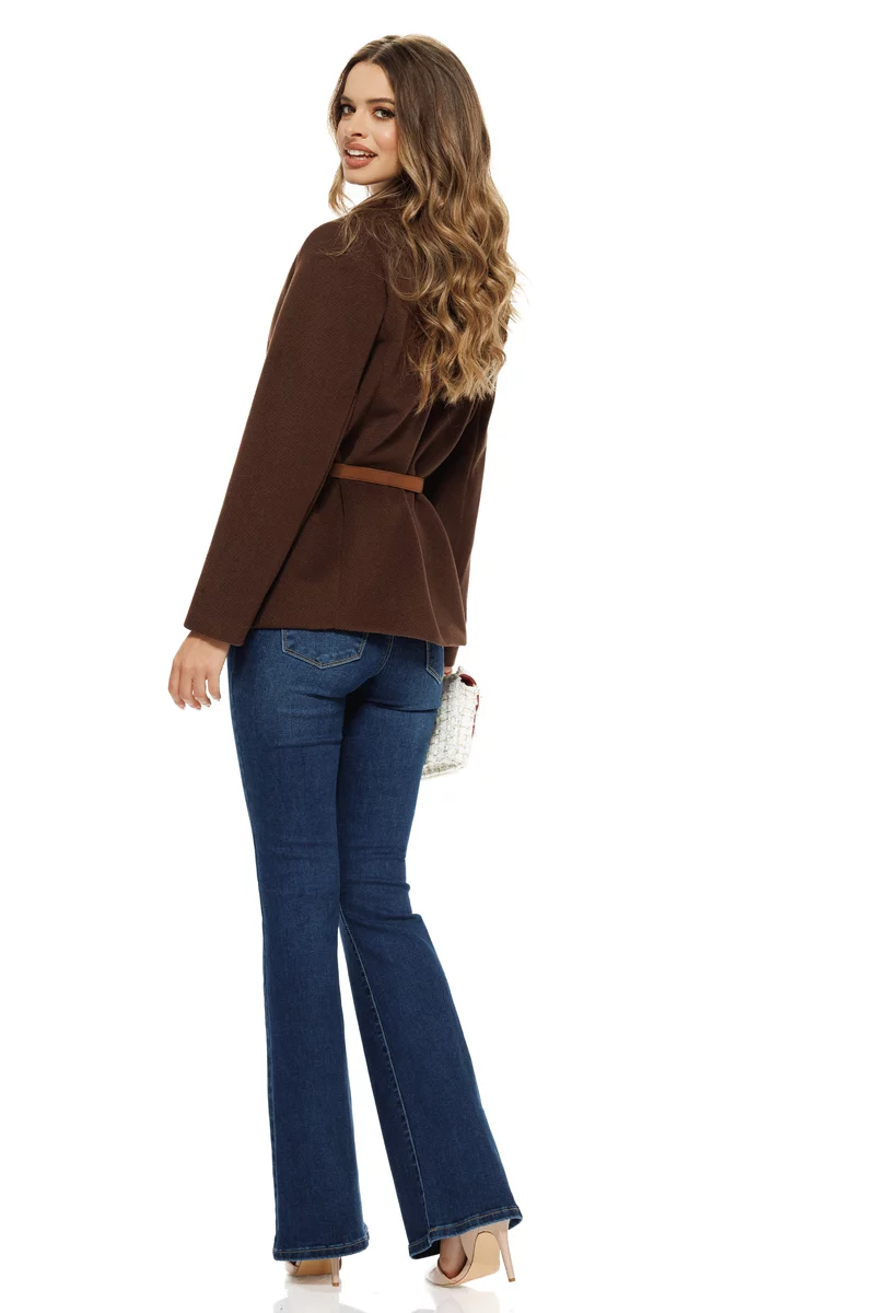 Sacou dama elegant din stofa supersoft maro cu accesorii aurii si curea