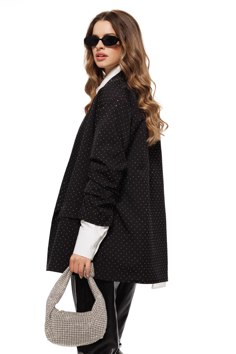 Sacou dama elegant negru cu strasuri